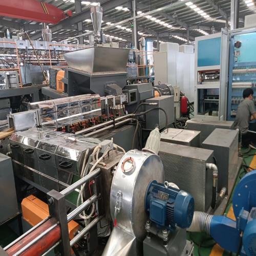 ;是將雙螺桿高速,強混煉與單螺桿低速,低溫,弱剪切特性相結(jié)合,揚長避短,工藝自動化程度高,v低煙無鹵造粒機流水線作業(yè),分散效果優(yōu)異,產(chǎn)量高,工況清潔,是當今熱敏性,物料配混改性的機型。低*特的帶滑軌的對吹熱切機頭,機頭部分通水冷卻,單螺桿芯部通水冷卻,有效防止了在生產(chǎn)過程中粘?,F(xiàn)象,產(chǎn)量顯著提高。